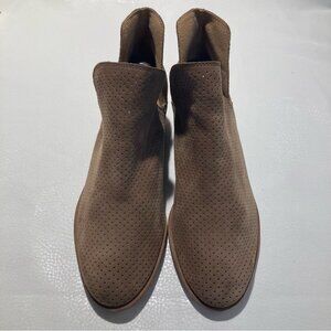 LUCKY BRAND Sz 8.5 Suede Perforated Pull On Short Stacked Heel Booties