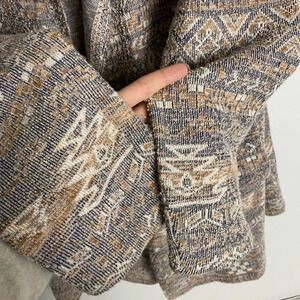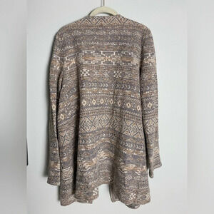 LUCKY Brand Cotton-Linen Tweed Aztec Print Cardigan Size Large