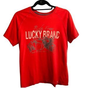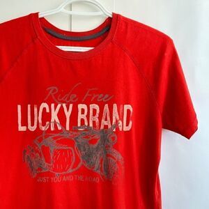 Lucky Brand 'Ride Free Just You and the Road' red graphic t-shirt. Size large. EUC