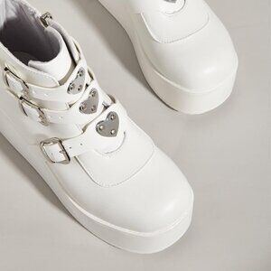 🆕 LUCKY STEP White PU Chunky Platform Ankle Boots Zip Buckle Goth Booties