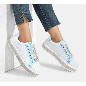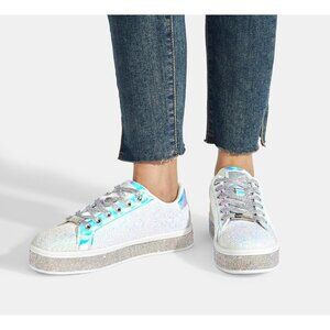 LUCKY STEP Womens White Glitter Sneakers Sparkly Bedazzled Wedding Bridal Shoes