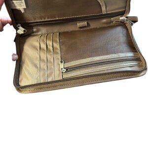 LUG Brown Quilted Tango Passport Travel Wallet. Has an outer pocket. Zippered. Slots for card and pockets inside.