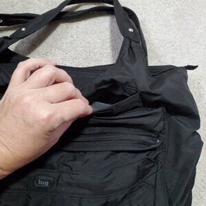 LUG Hopscotch Quilted Travel Shoulder Bag Handbag Purse Black 17 x 12.5 x 5