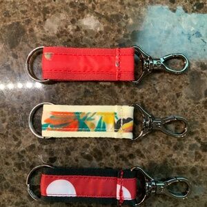 LUG KEY FOB X 3…. I’m sorry, I can’t remember the patterns of the top two…. But the 3rd one is crimson large dot