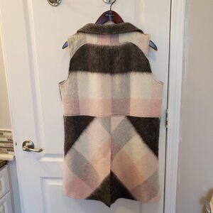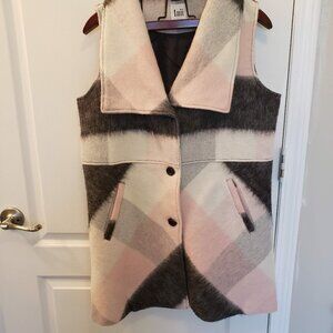 LUII ANTHROPOLOGIE Pink/Gray/Cream Wool Blend Plaid Vest Jacket size L