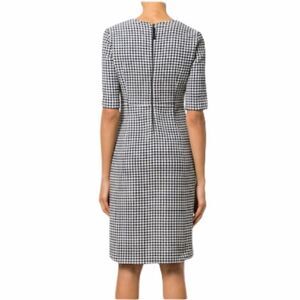 LUISA CERANO Checked Fitted Gingham Dress V-Neck Knee Length Black White 14