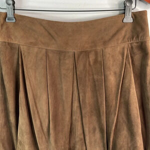 LUISA SPAGNOLI Suede Box Pleated Mini Skirt Brown Lined Bubble Hem S