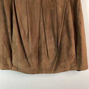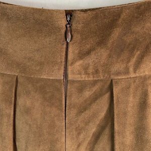 Women’s dark warm brown Luisa Spagnoli genuine Suede leather box Pleated Mini Skirt.