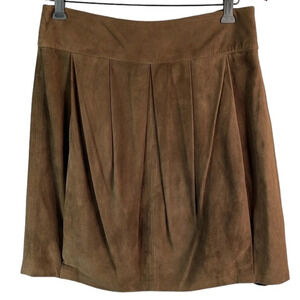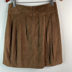 LUISA SPAGNOLI Suede Box Pleated Mini Skirt Brown Lined Bubble Hem S
