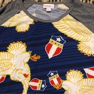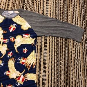 𝅺LULAROE Randy American Patriotic Flag Eagle Raglan All Over Womens Size Large