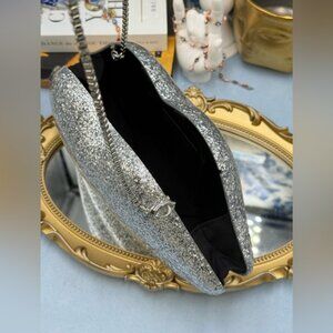 LULU GUINNESS Silver GlitterIconic Lips Perspex Clutch on a Chain Bag