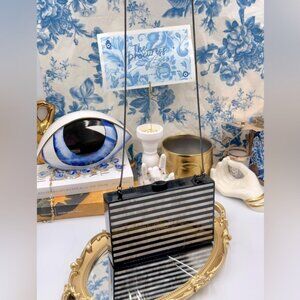 🆕 LULU GUINNESS 🧿 NWT Cassie Striped Black & Mother of Pearl Perspex Clutch
