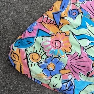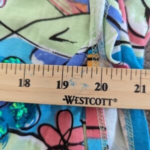 Lulu-B floral bird print sequin cotton multicolor Tshirt batwing size Small