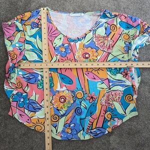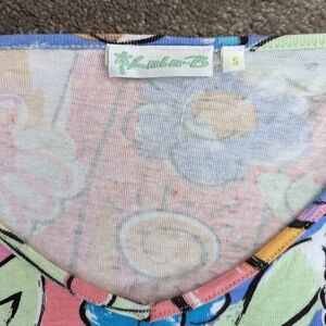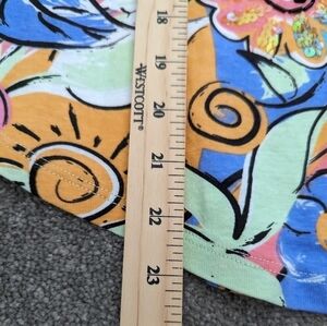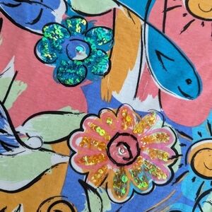 LULU-B floral bird print sequin cotton multicolor Tshirt batwing size Small