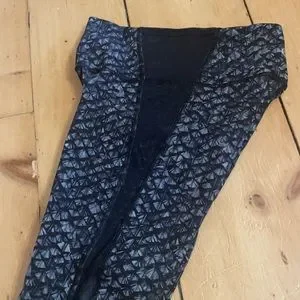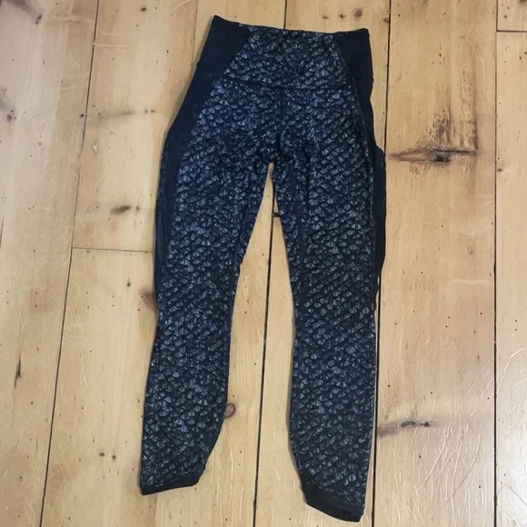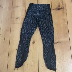 Lululemon size 4 high-rise leggings with mash down the side, cropped, excellent condition, no flaws.