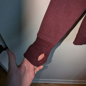 #lululemon #athleticwear #zipfronthoodie #maroontop #ribbeddetails #breathablefabric