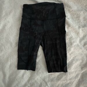 Lulu camo bike shorts with side pockets, long inseam, size 2, hardly worn
