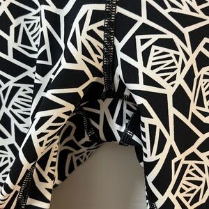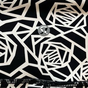 Sleek black and white geometric print leggings designed in Lululemon’s Full-On Luxtreme fabric for superior support and comfort. High-rise fit, perfect for yoga, training, or casual wear.