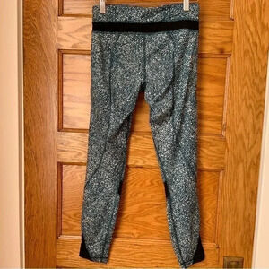 Lululemon Inspire Tight II in Pebble Print Parfait Pink Alberta Lake/Black. Our favourite run crops just got longer! We took everything we love about the Inspire Crop and made them into 7/8-length pants to cover more skin when we hit the ground running. The secure leg pockets let us stash our essentials, and hidden reflectivity helps us shine bright in low light. Bring on the night!