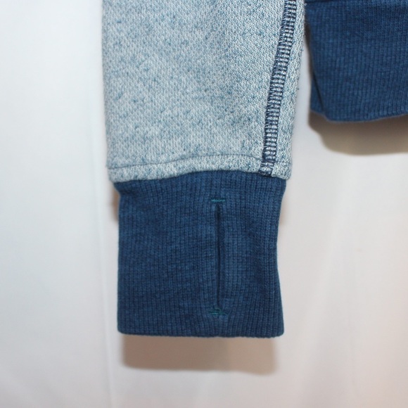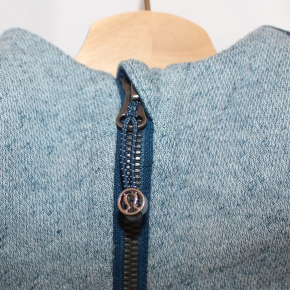 Blue and white patterned Lululemon zip-up jacket in like new condition! Its a thicker material and has the rip tag to confirm size 2!