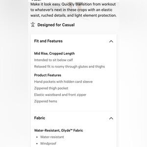 Lululemon mid rise, ruched crop, size 8, windproof, water repellent, cropped length, roomy fit, great condition