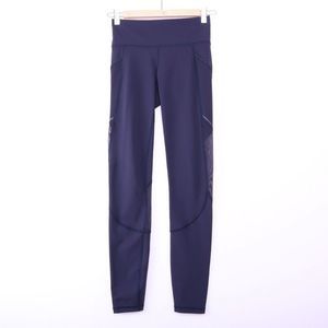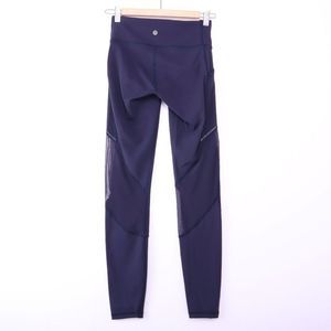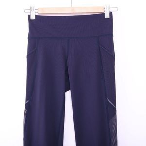 LULULEMON Navy Blue Mesh Detailed leggings , See Through Mesh Details, Side Pockets