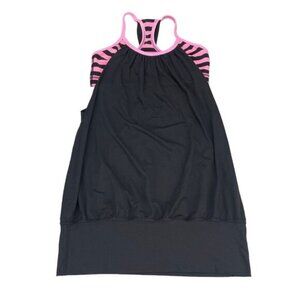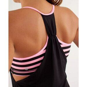 LULULEMON No Limits Tank Top Sz 4 Black Sea Stripe Printed Pink Shell