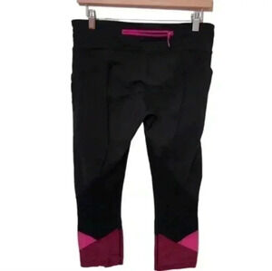 Lululemon Pace Rival Crop Black Pink Fuscia Leggings Yoga Running Women's