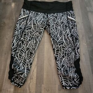 These crops have 7 different pockets and reflective details. Luxtreme fabric that is breathable and sweat wicking with four way stretch. Angled hem with elastic grip. Strategically placed mesh. Drawcord waist. Flat seams. Tight fit. Very good pre-Loved condition. No flaws.