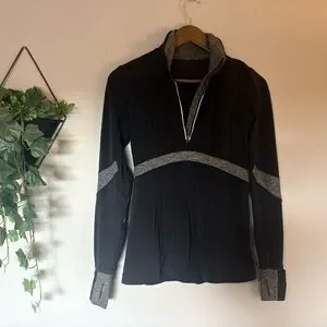 Stay stylish and comfortable with this sleek black and gray quarter-zip top. Perfect for any casual outing or workout session.