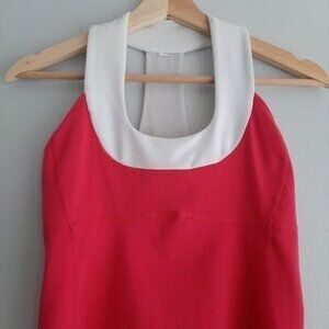LULULEMON Scoop Neck Mesh T Back Tank Top Pink & White Sz 6