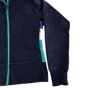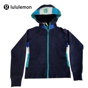 LULULEMON Scuba Hoodie Jacket Zip-Up color block navy teal and blue - Size 6