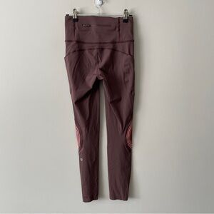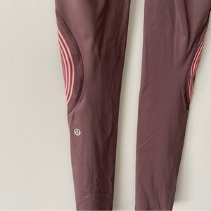 Lululemon Speed Light Tight 25" Cherry Cola / Coral Kiss. Used and in great condition. Feel light and fast as you chase the miles—we made these tights with sleek Nulux™ fabric and a minimal, bonded waistband with no extra layers or seams.