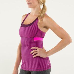 LULULEMON Sz 4 Stuff Your Bra Tank II Stripe Raspberry Glo Plum Pockets Mesh - 4