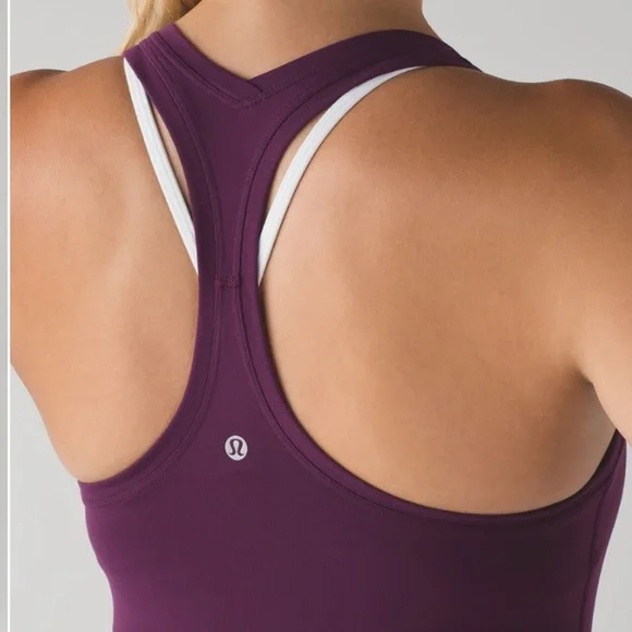 Racerback tank by Lulelemon in deep purple. Slim fit, in good pre-owned condition. Size 6.