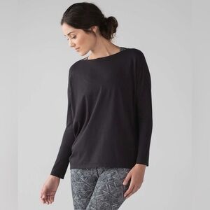 EUC, Lululemon, long sleeved, black, sheer type fabric with front side tie. Super soft and comfortable and flattering, longer fit.