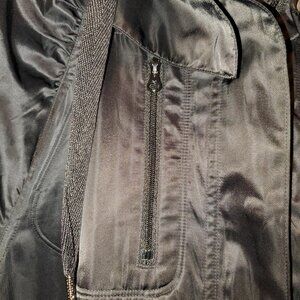 Pre-owned in excellent condition with no rips or stains. Women’s black hooded cape with zipper and button closure. Very unique. Has drawstrings at the hem. Comes from smoke and pet free home.
