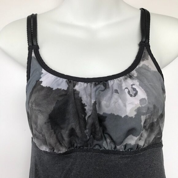 LULULEMON lulu Hot 'N Sweaty Tank Coal Grey/White Silver bra sz 6