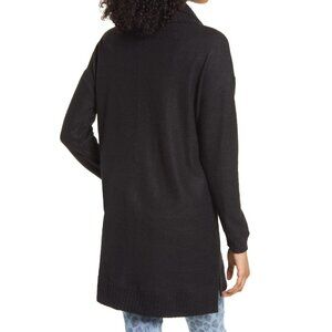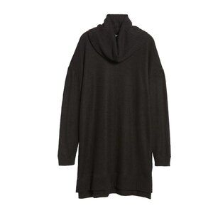 A ribbed cowl neck adds to the cozy comfort of a longline tunic styled with raised center seams at the front and back.