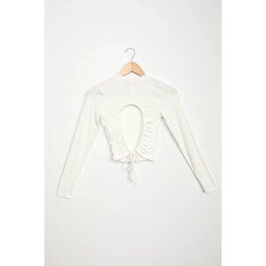 * Lulus Going Back to Basics White Cutout Long Sleeve Top! Soft and stretchy jersey knit shapes this trendy top that has a rounded neckline, fitted long sleeves, and a slightly cropped bodice. Open back design is accented with a cinching drawstring that ties at the hem..