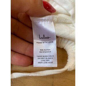 LULU'S "Back To Basics" Womens White Long Sleeve Tshirt Sz Small Back Cut Out