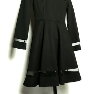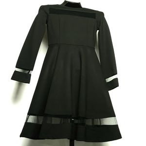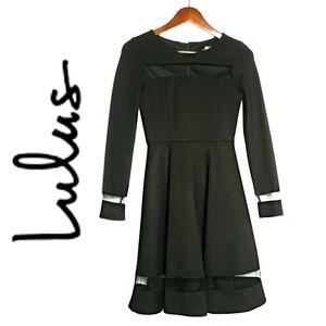 LULU'S Fit & Flare Longsleeved Cutout Mesh Cuff & Hemline Dress Blk XS