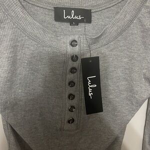 LULUS Heather Grey Long Sleeve Button-Front Bodysuit Size L