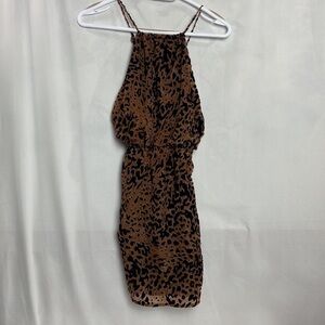 Lulus Exclusive! Set out for a night on the town in the Lulus Intention Brown Leopard Burnout Velvet Print Dress! Lightweight, burnout velvet fabric, in a chic leopard print, falls from an apron neckline, into a fitted, elasticized waist. Flirty skirt and skinny, adjustable straps that cross over the open back.