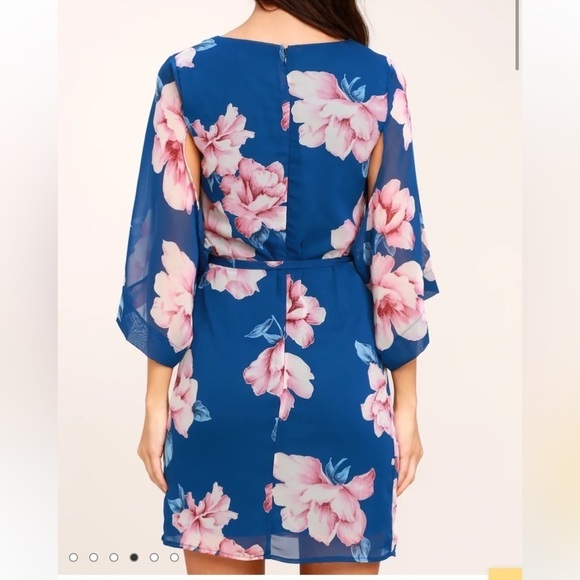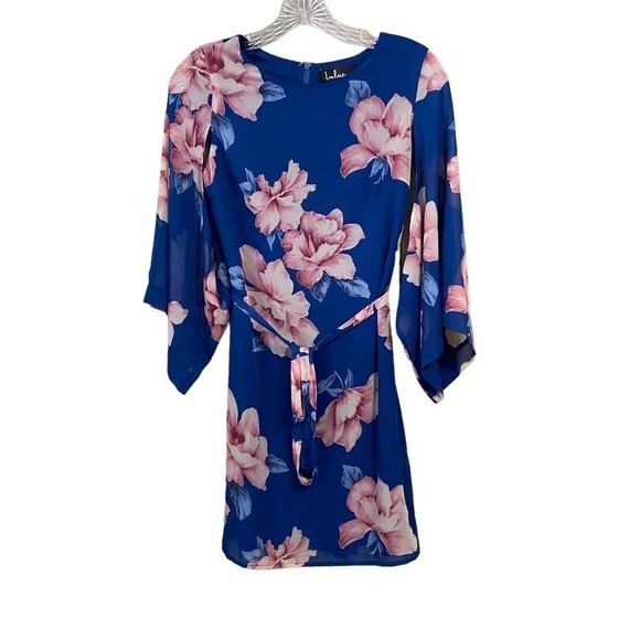 🆕 LULUS SZ XS Joyful Noise Denim Blue Floral Print Mini Dress