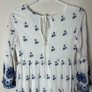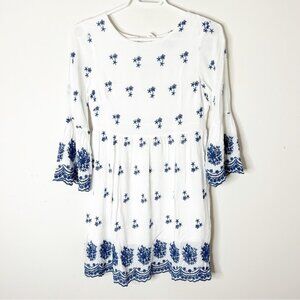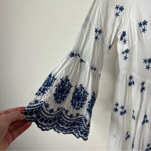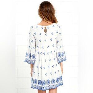 LULUS With a Whisper Blue and Ivory Embroidered Dress 3/4 Sleeve Boho Chic XS