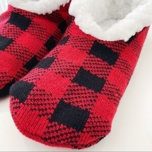 NWOT Lumberjack Red Plaid Sherpa Lined Novelty Unisex Slipper Socks