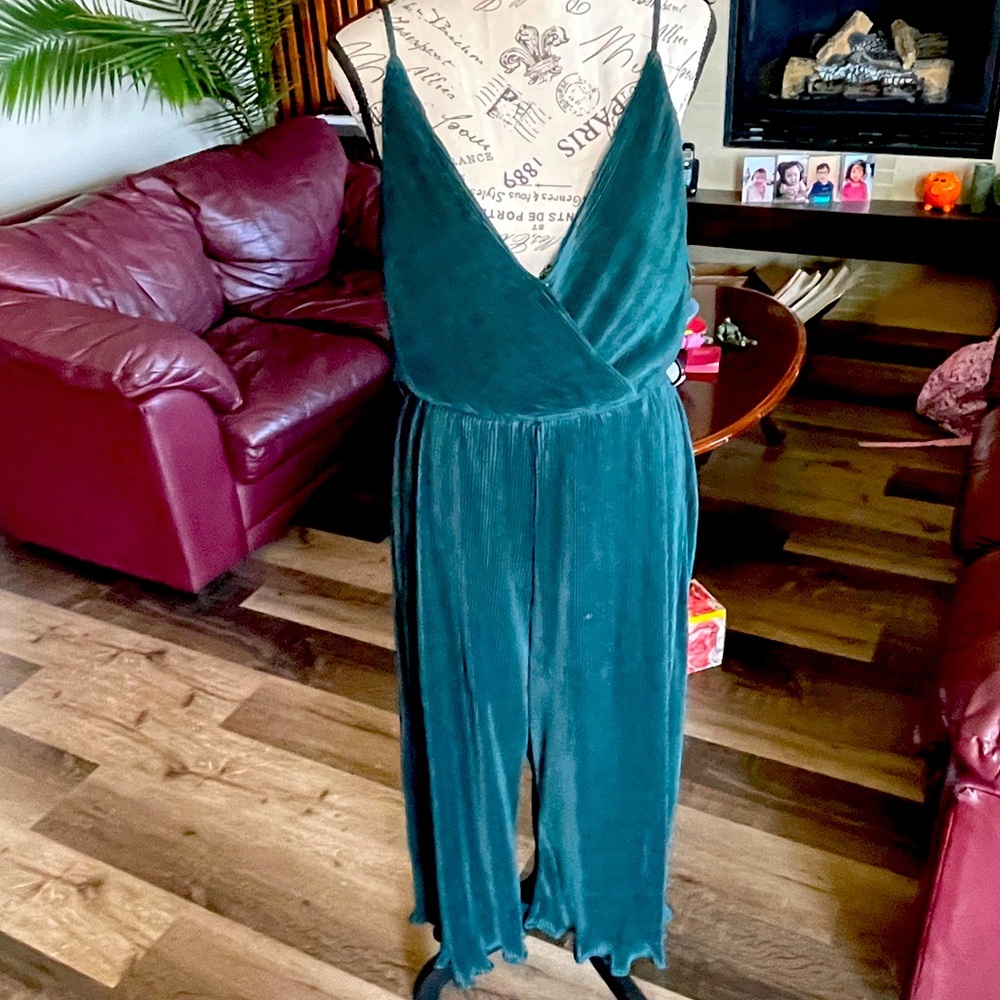 Silk with linings. Dark green in color. Excellent condition. Very sexy and elegant looking attire.