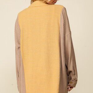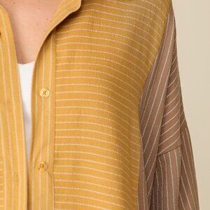 Oversized Striped Button-Up Shirt, Mustard Yellow & Taupe Brown