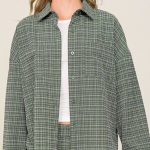 Green Plaid Button Up Shirt, Oversized Casual Top, Lightweight Shacket Style